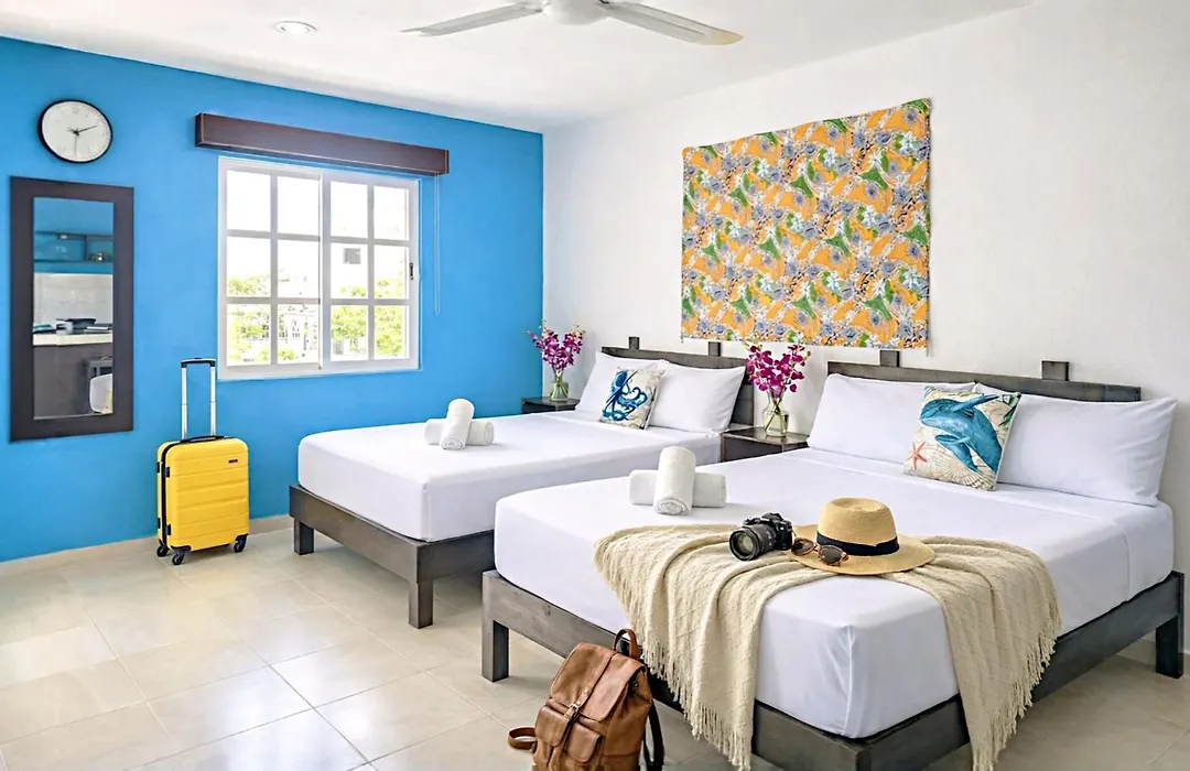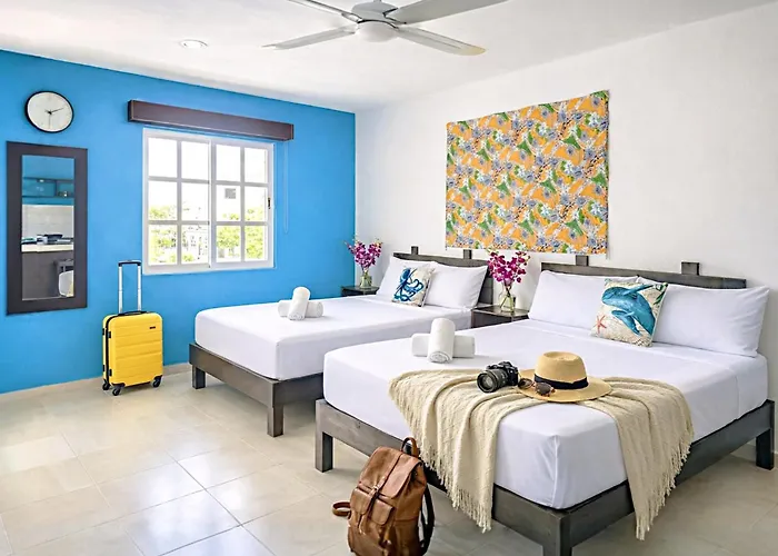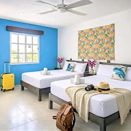 Staying at Spacious & Comfy Suite 2 Full Beds Steps To Beach Kitchen Ac Fast Wifi 4A Playa del Carmen, guests can relax on a terrace a 17-minute walk from the Scenic Point Esmeralda White-Sand Beach.